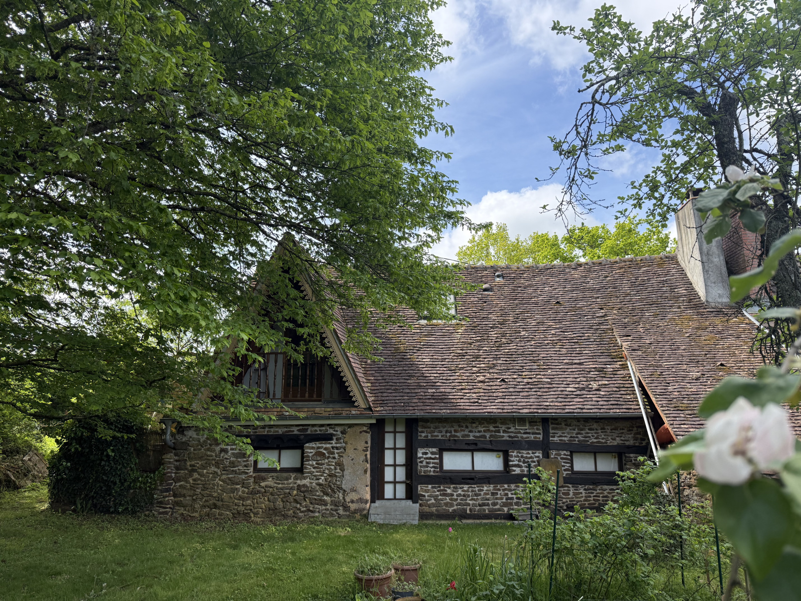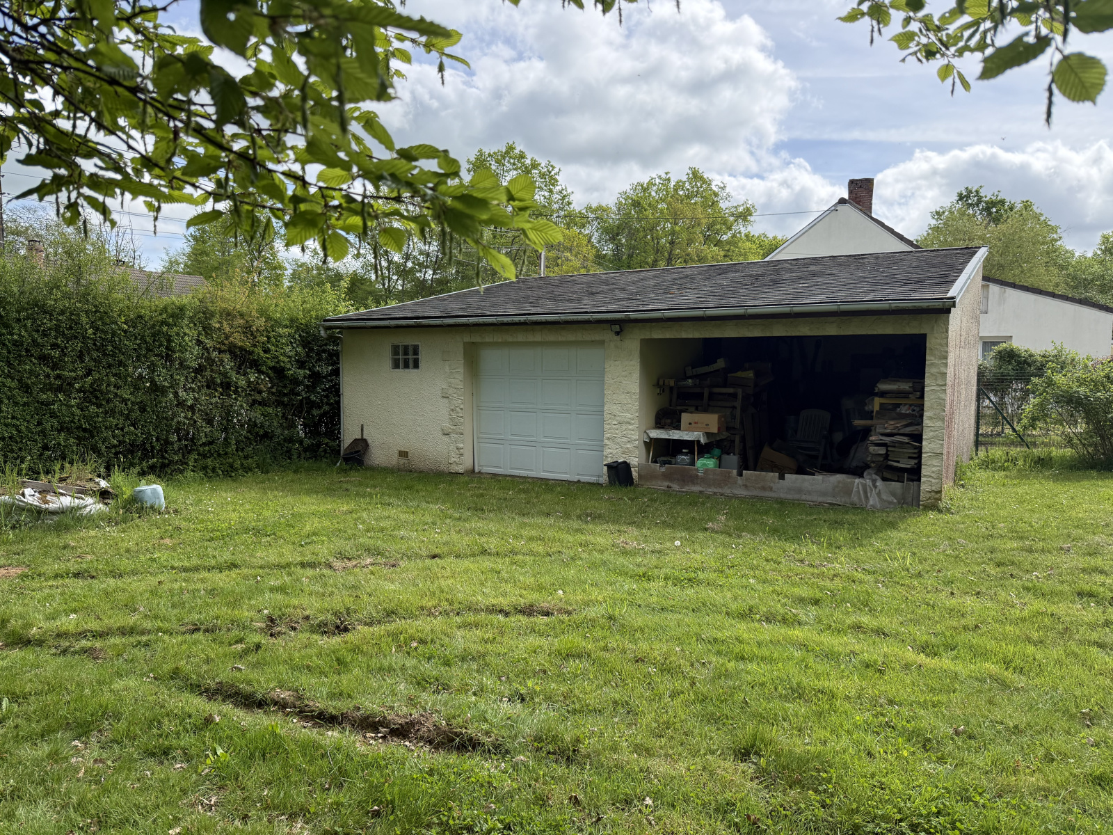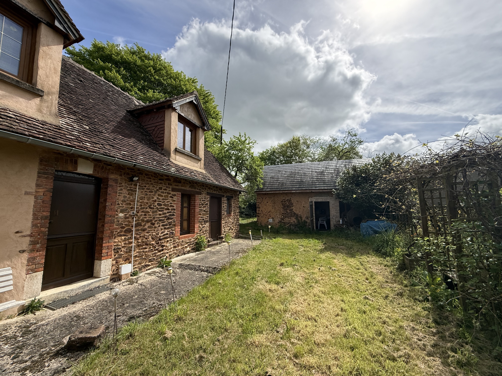 À l’extérieur, le terrain de 1700 m² offre un véritable espace de respiration, une annexe aménagée en atelier / cuisine d’été, parfaite pour les beaux jours, un garage et un atelier, pour laisser libre cours aux projets